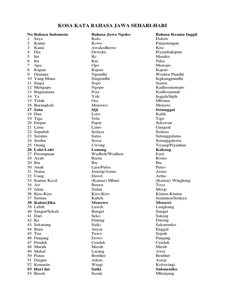 Kosakata Ungkapan Bahasa Jawa Dalam Bahasa Indonesia Samudra Biru