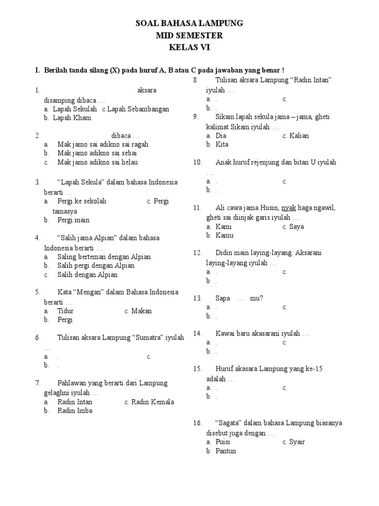 Kosakata Bahasa Lampung Dialek Nyo Menggala Info Bandar Lampung