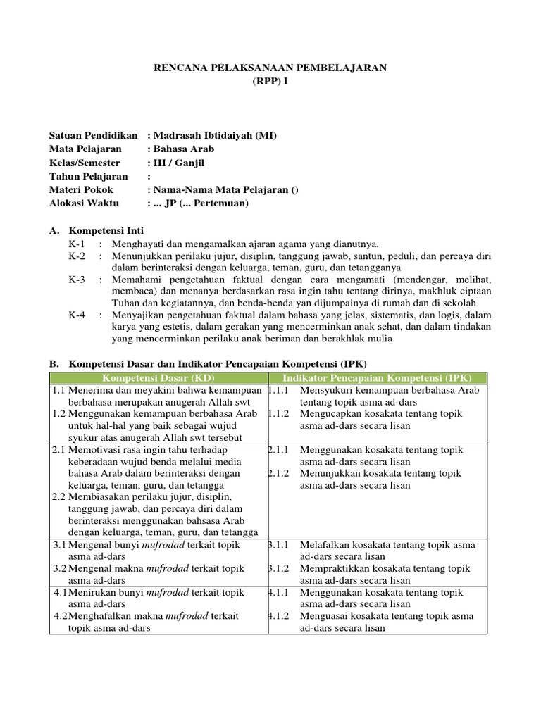 Rpp Bahasa Arab Kelas Ma X 1 2 K 2013