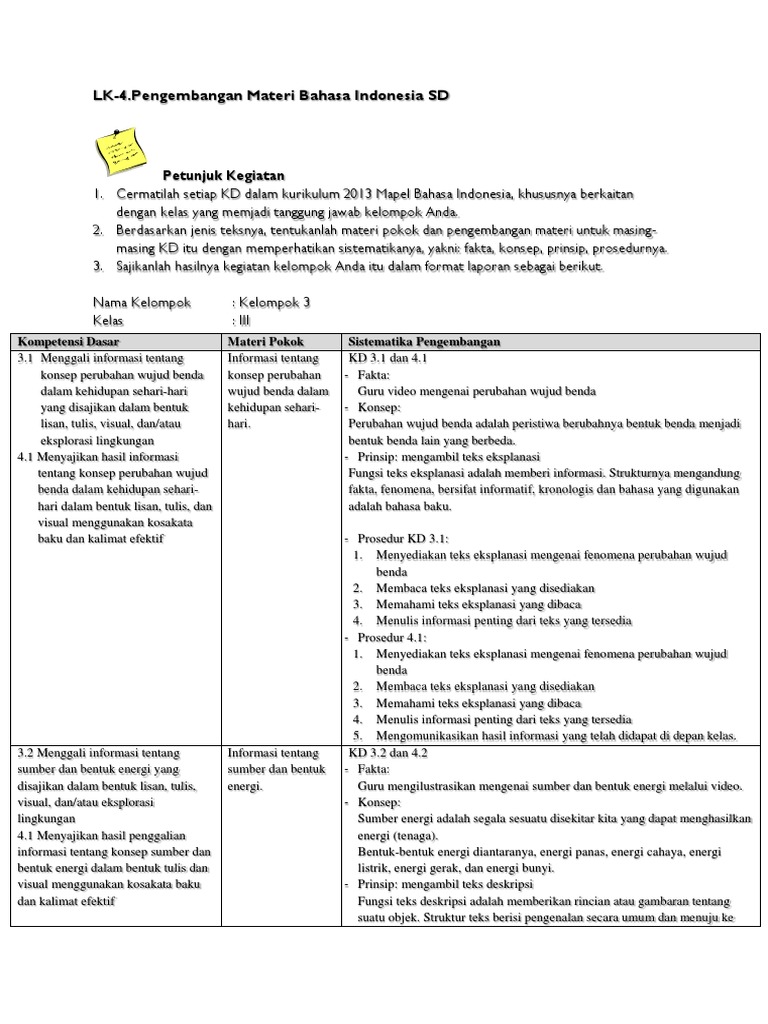 Ki Kd B Indonesia Sd