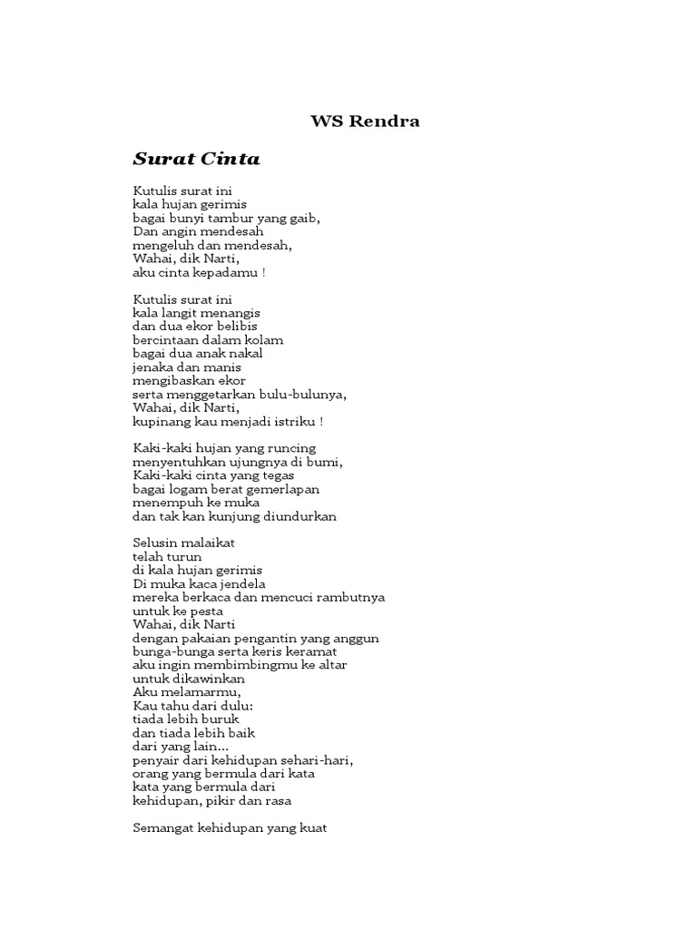 Sejumlah Puisi Cinta Ws Rendra Teras Nusa