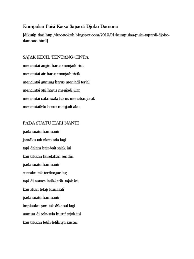 Waktufanakaryamuabadi On Twitter Puisi Sapardi Djoko Damono